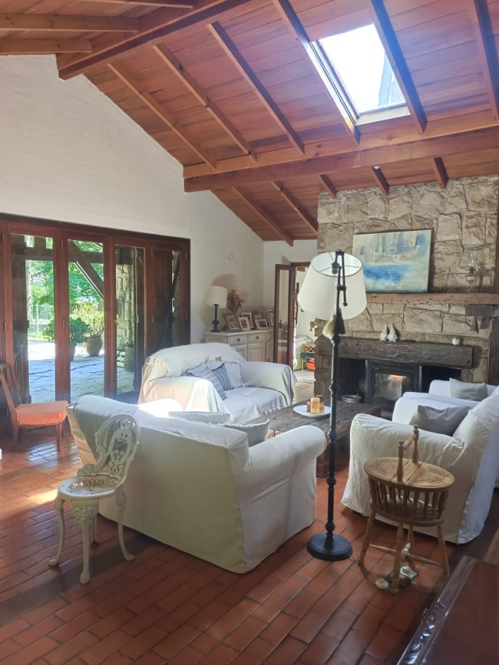 Ubicado en el excelente entorno del Bosque Peralta Ramos, se ofrece en venta este importante chalet de 267 m² cubiertos, desarrollado sobre dos lotes en esquina únicos (914 m² totales). La propiedad se distingue por su calidad constructiva, con fachada de piedra y techos interiores de madera.