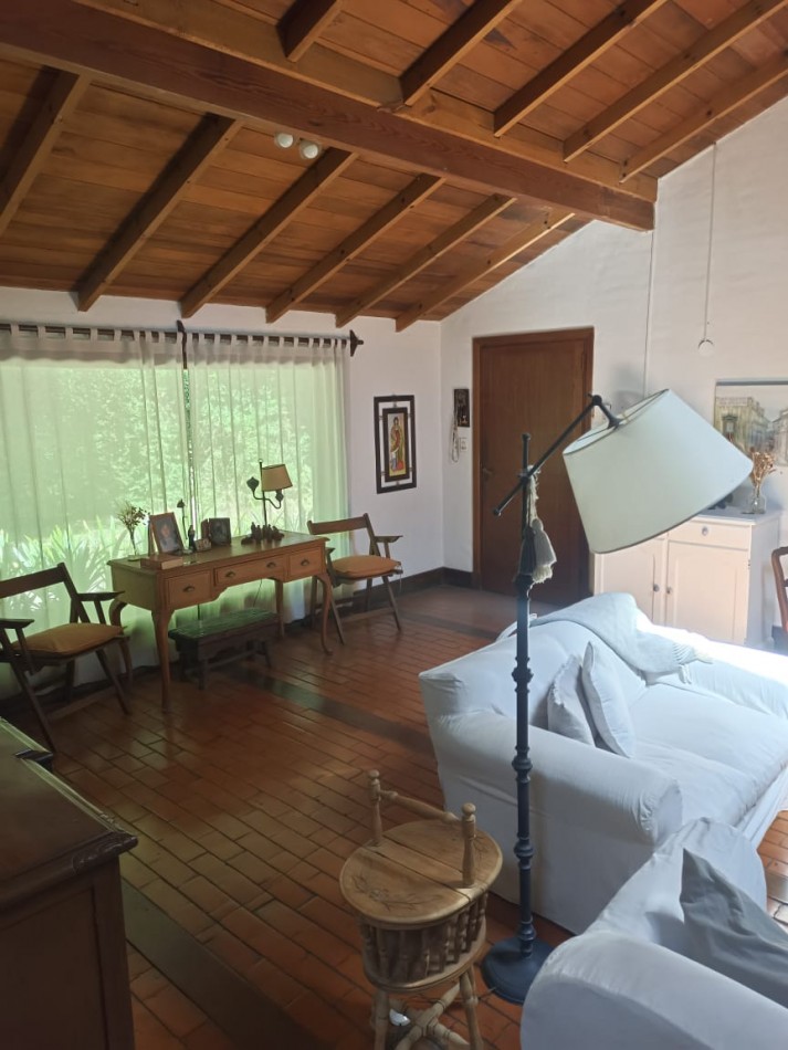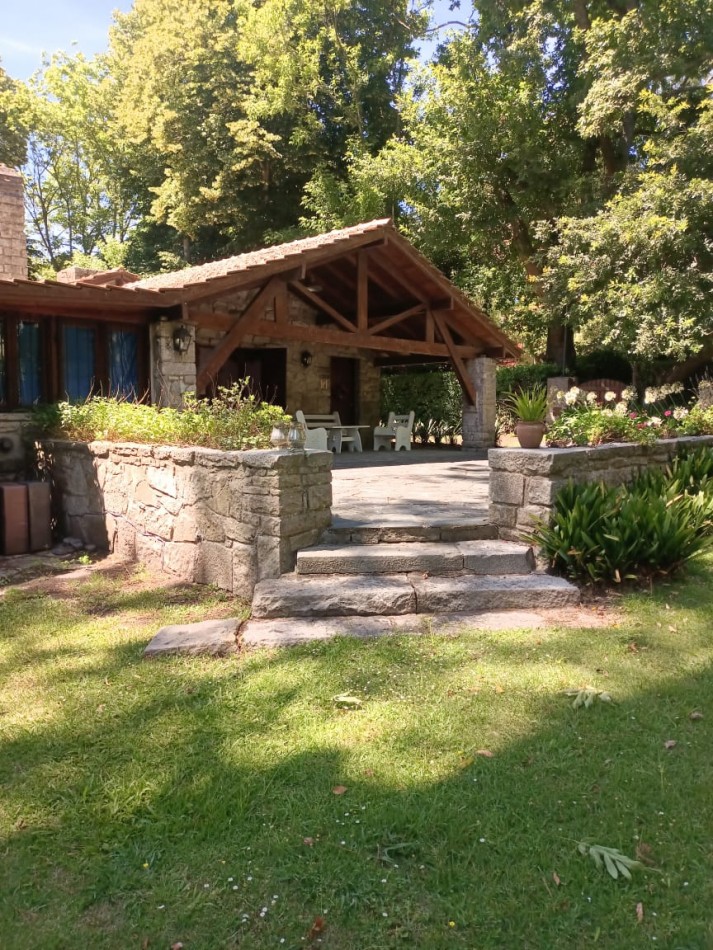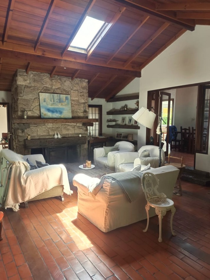 Ubicado en el excelente entorno del Bosque Peralta Ramos, se ofrece en venta este importante chalet de 267 m² cubiertos, desarrollado sobre dos lotes en esquina únicos (914 m² totales). La propiedad se distingue por su calidad constructiva, con fachada de piedra y techos interiores de madera.